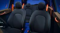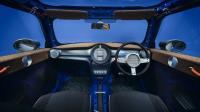 چاپ سه بعدی نقش مهمی در طراحی داخلی نیز ایفا می کند چراغ های فرمان و کیسه هوای ستون A در پشت شیکه ای نمایان شده اند و چوب پنبه بازیافتی در بالای درها و داشبورد به جای کاهش صدای معمولی استفاده می شود. سرعت سنج نمادین مینی بر روی گوشی هوشمند راننده جایگزین شده است که به خودرو متصل شده و به عنوان سیستم اطلاعات سرگرمی آن عمل می کند. علاوه بر کیسه هوای نمایان شده ، فرمان دارای رینگ است که در نوار فرمان پیچیده شده و در دوچرخه های جاده استفاده می شود.
