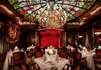 در زیر سقفهای شیشهای با طراحی پیچیده که با پنجرههای شیشهای رنگآمیزی احاطه شدهاند، شام بخورید. این یک مکان رمانتیک است که یادآور نقاط نمادین پاریس مانند مولن روژ است. اجرای موسیقی زنده درخشان و عظمت عجیب و غریب اروپایی این لحظه را خاص و خاطره انگیز می کند.